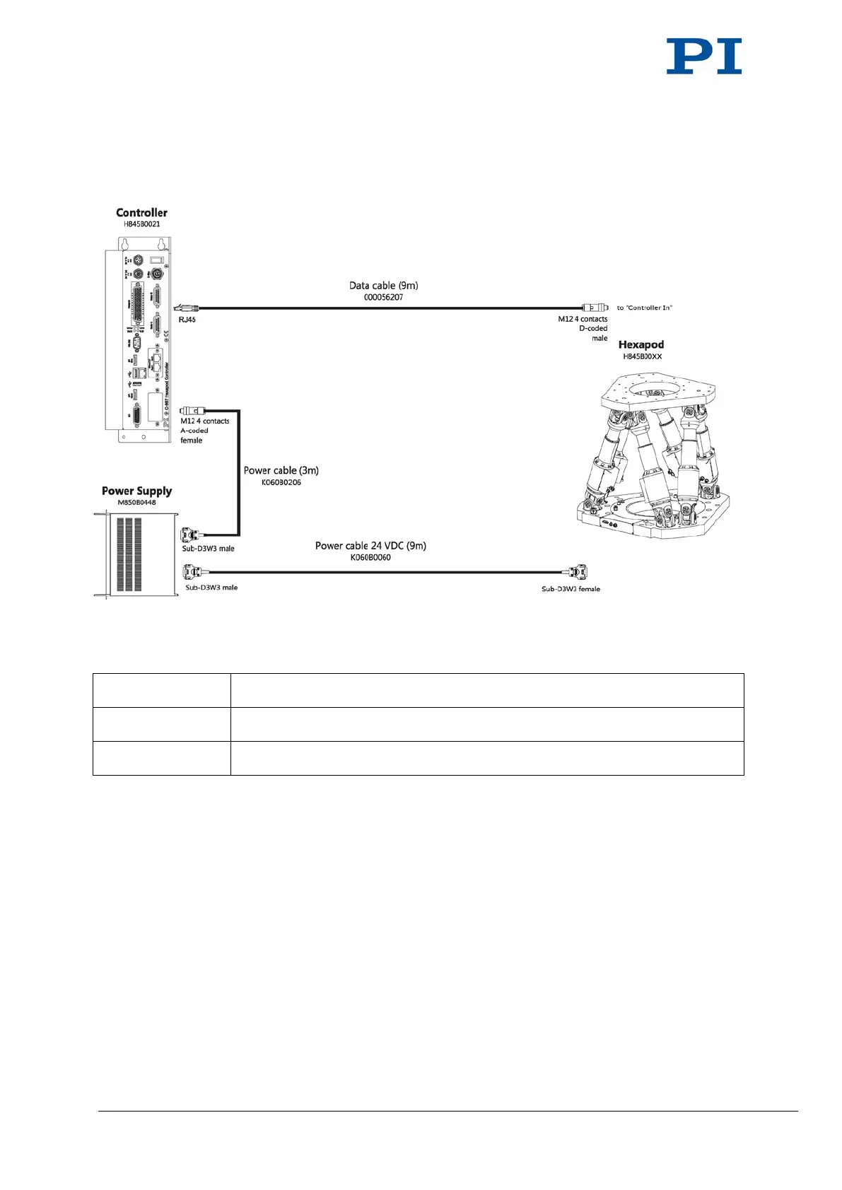 K060B0060 Power supply cable for hexapod, Sub-D 3W3 (m) to Sub-D 3W3 (f), 9 m