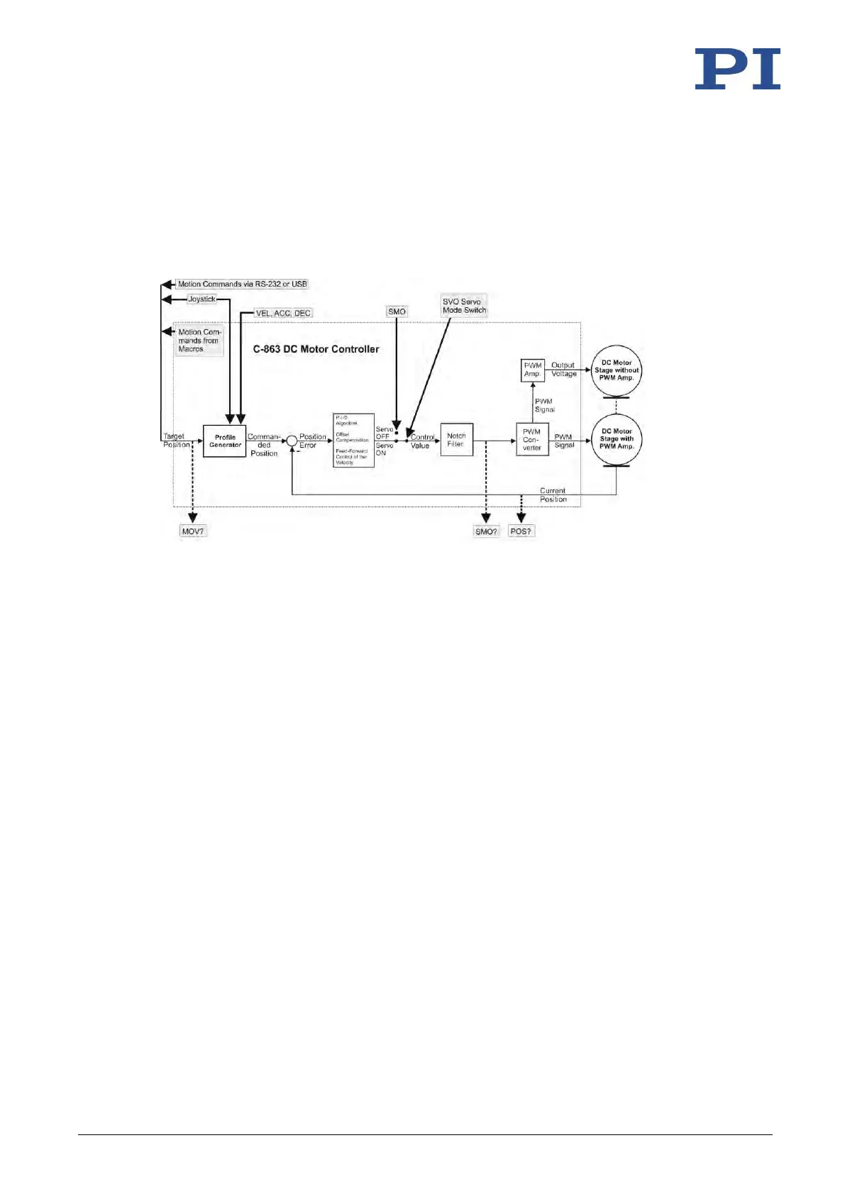 The C-863.12 controls the motion of the logical axis of a positioner. The following block diagram