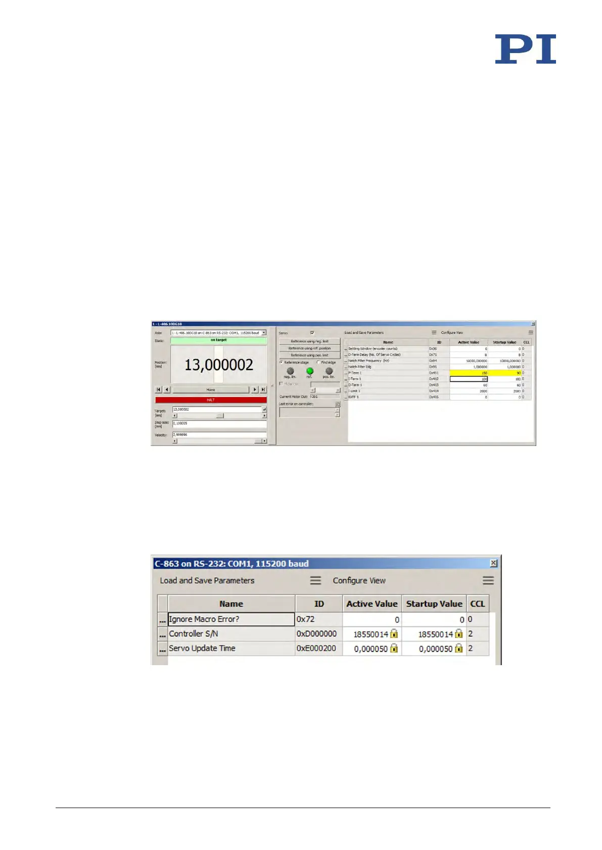 have saved the parameter values of the C-863.12 in a text file on the PC (p. 233).