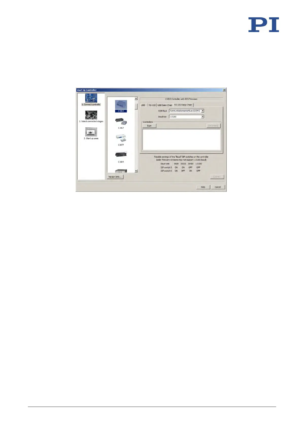 − If you have connected the first controller in the chain to the PC via the RS-232
