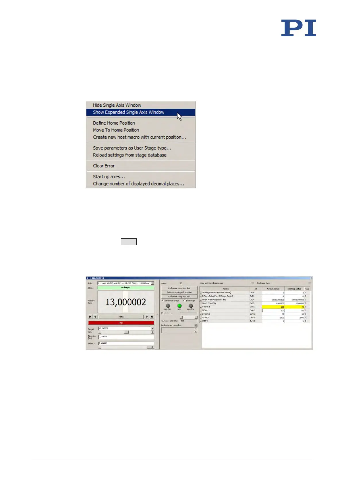 window of PIMikroMove by clicking the right mouse button on the corresponding line
