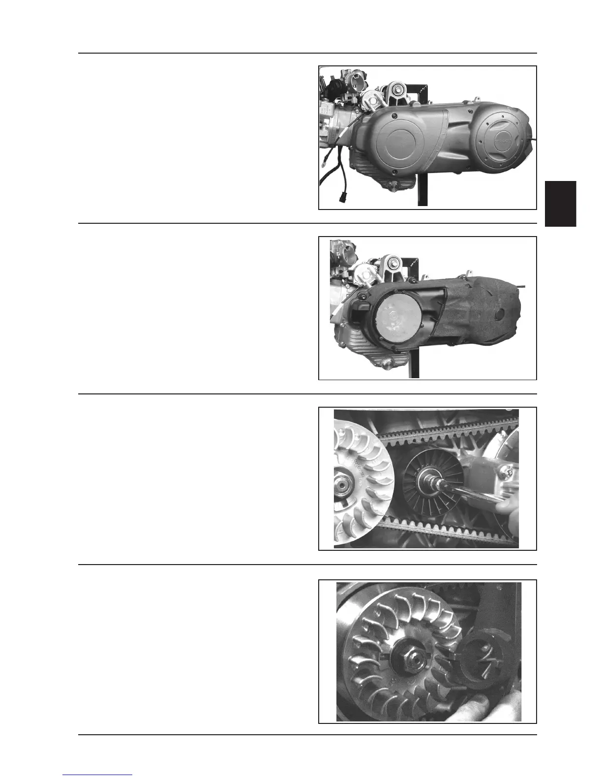 - Turn the pulley central nut with a 27 mm wrench to