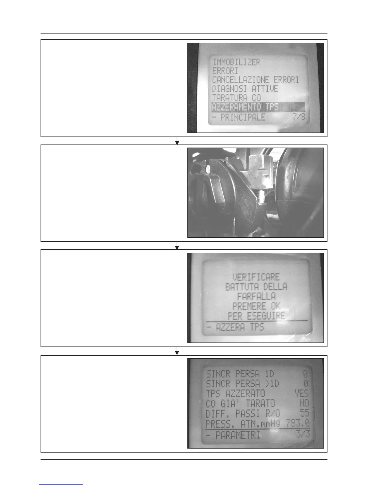 PIAGGIO 500 cc - Fuel Injection - TPS Reset Procedure Steps