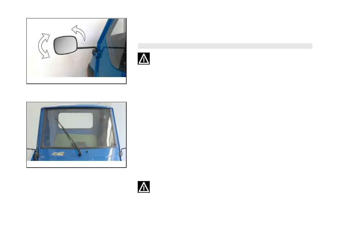 NEVER ADJUST MIRRORS WHILE DRIVING AS YOU MAY LOSE CONTROL OF