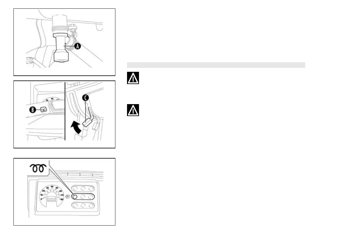 With cold engine, pull the starter lever «C» and insert the start key into the key switch,