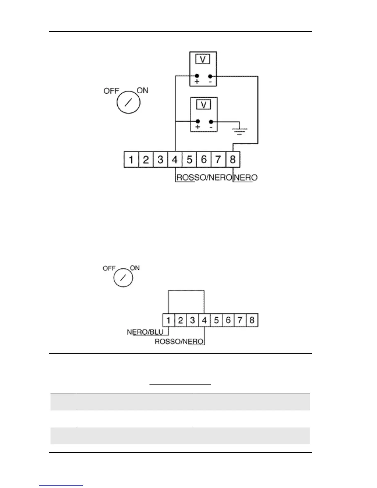 - Use a jumper to connect terminals no. 1 (black/blue) and no. 4 (red/black) (see figure) and, operating