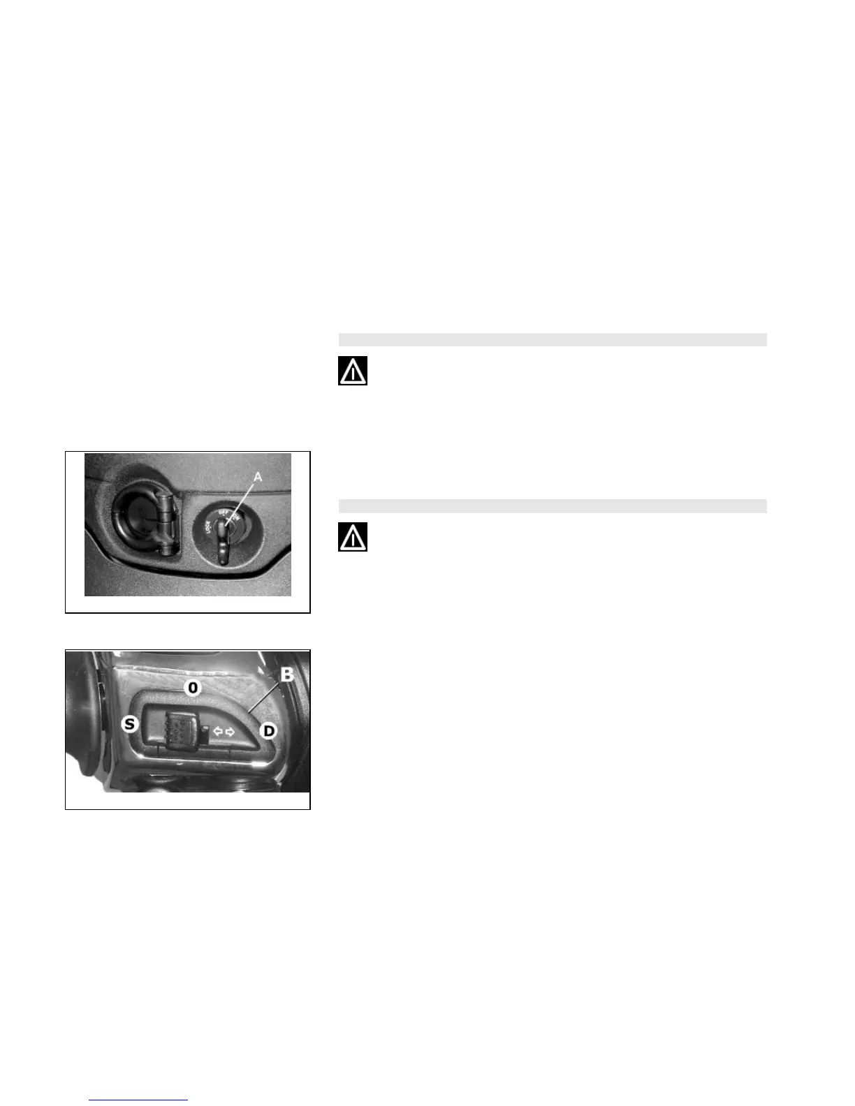 Lever towards "S" = Left turn indicator is switched on;