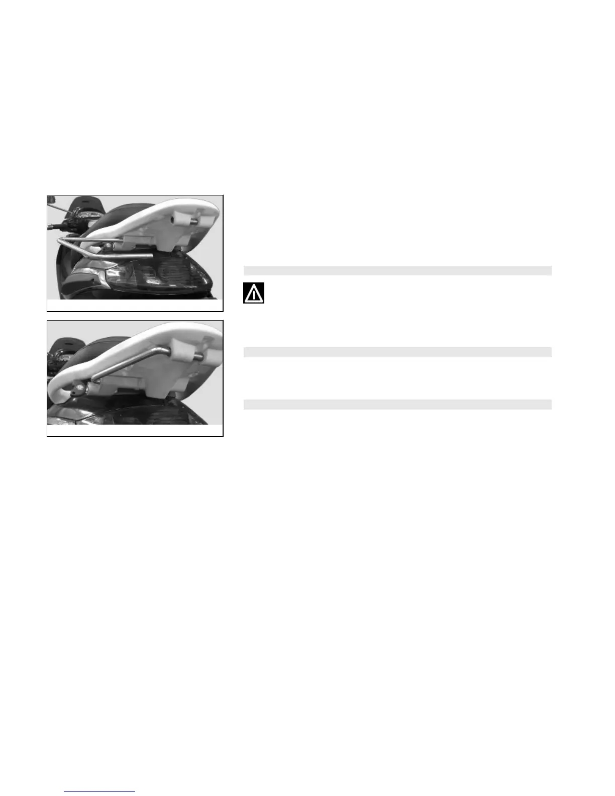 rail of the luggage rack in order to avoid preventing starting.