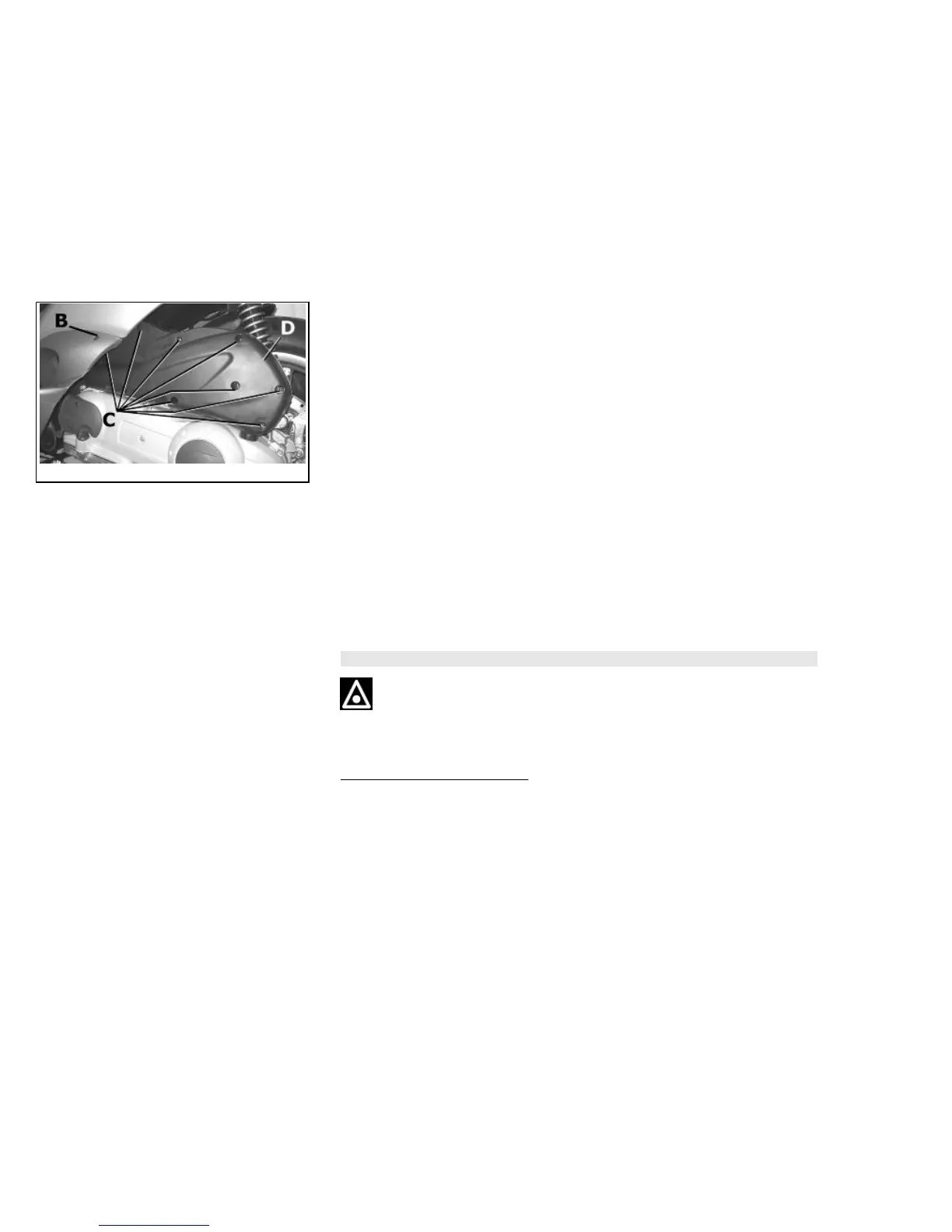 2. Remove retaining screws "C" and remove the cover "D" of the air filter.