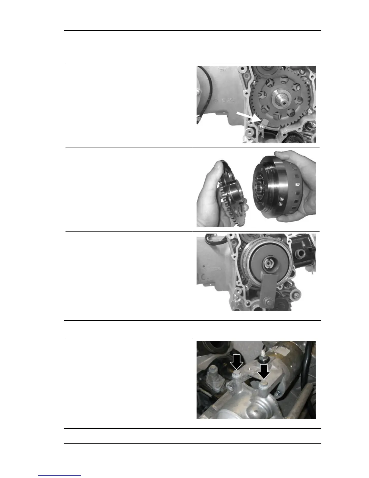 - Fit the starter motor on the crankcase and lock