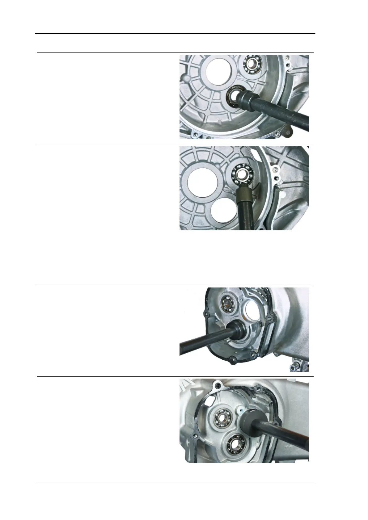 - Heat the crankcase by means of the specific tool and then insert the bearings.