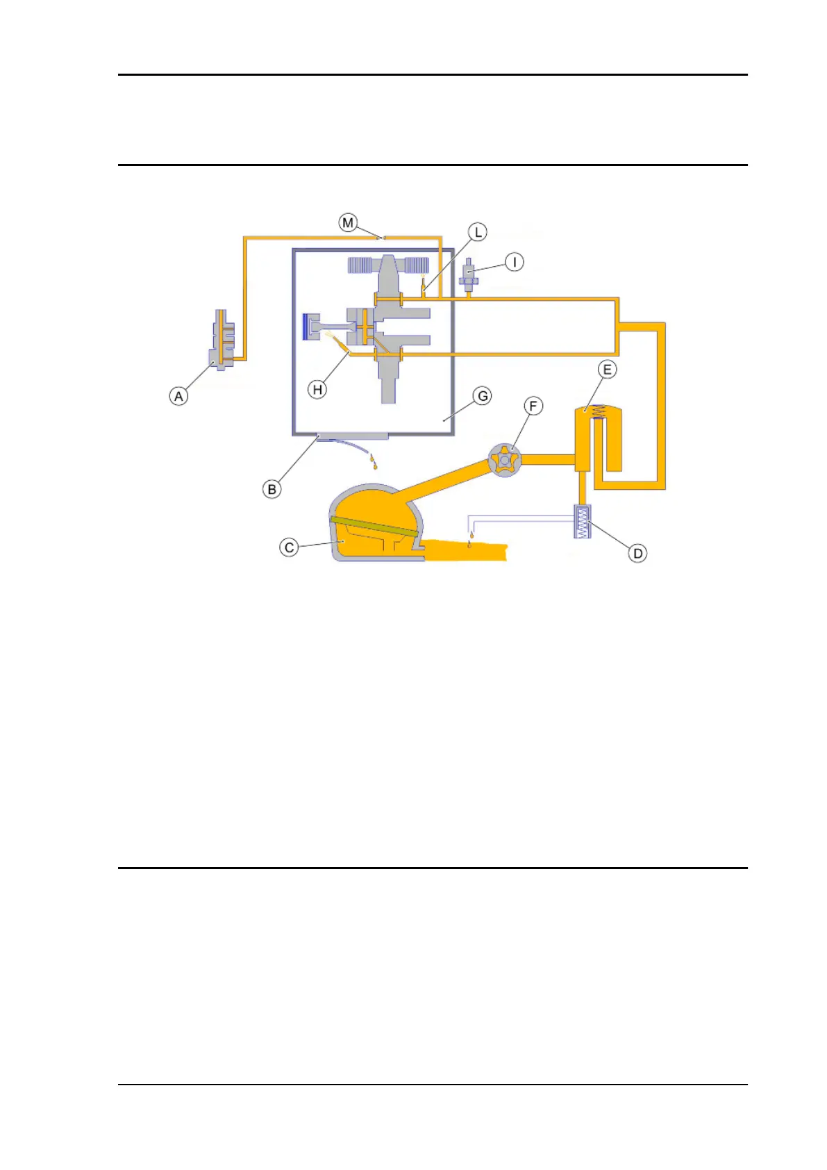 The lobe pump «F» sucks the oil from the sump, through the mesh pre-filter «C», it pushes it into the