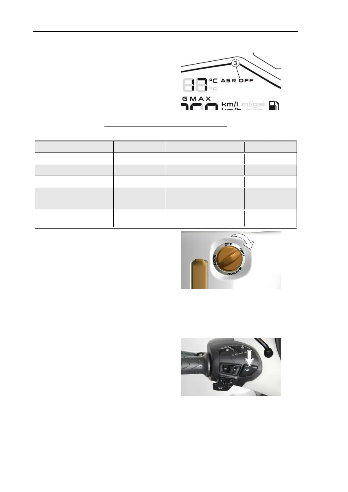Icon "ASR OFF": on steady "ASR" icon: 5Hz fast