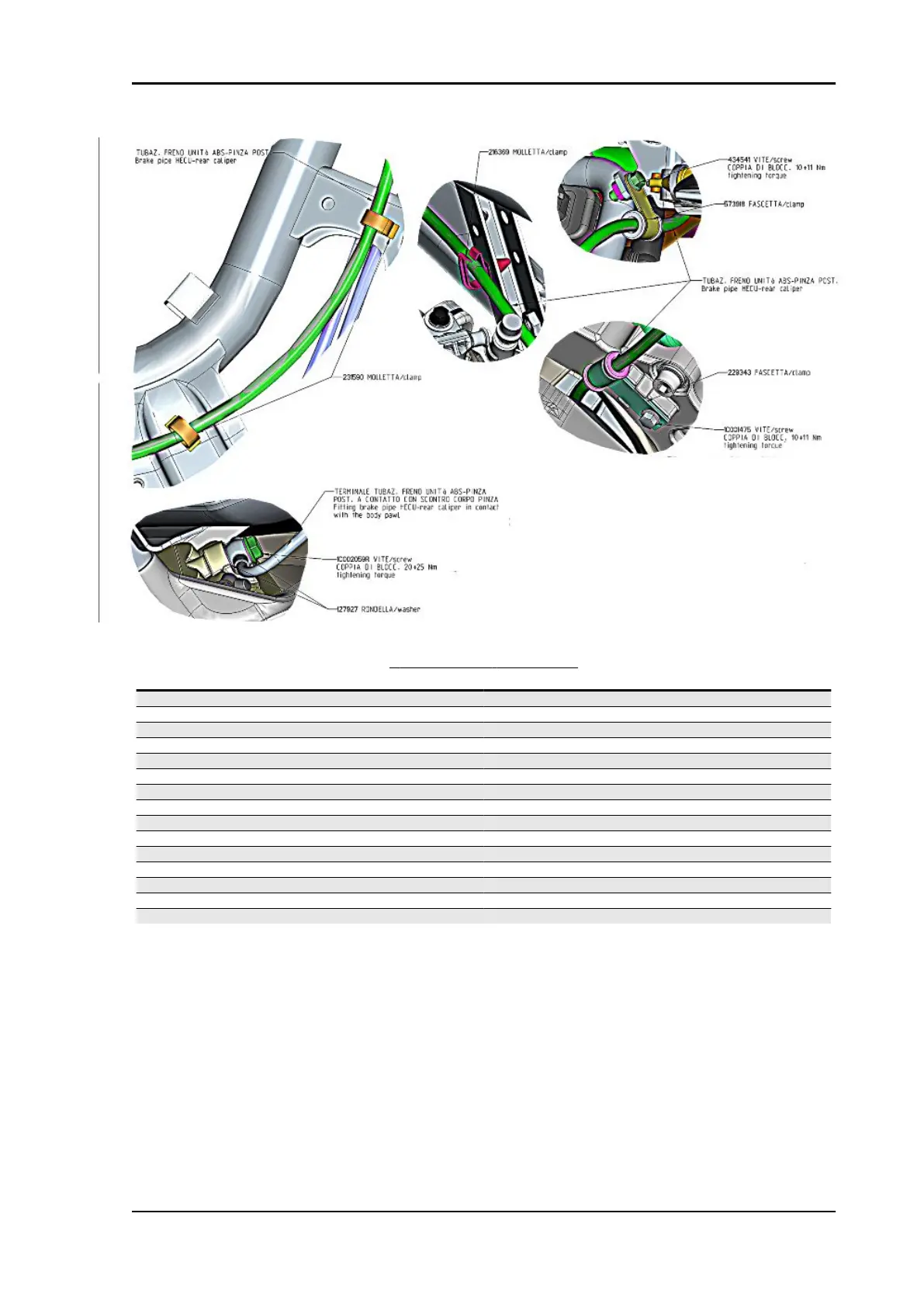 Rear brake pipe - Rear brake pump 22.5 ± 2.5 Nm