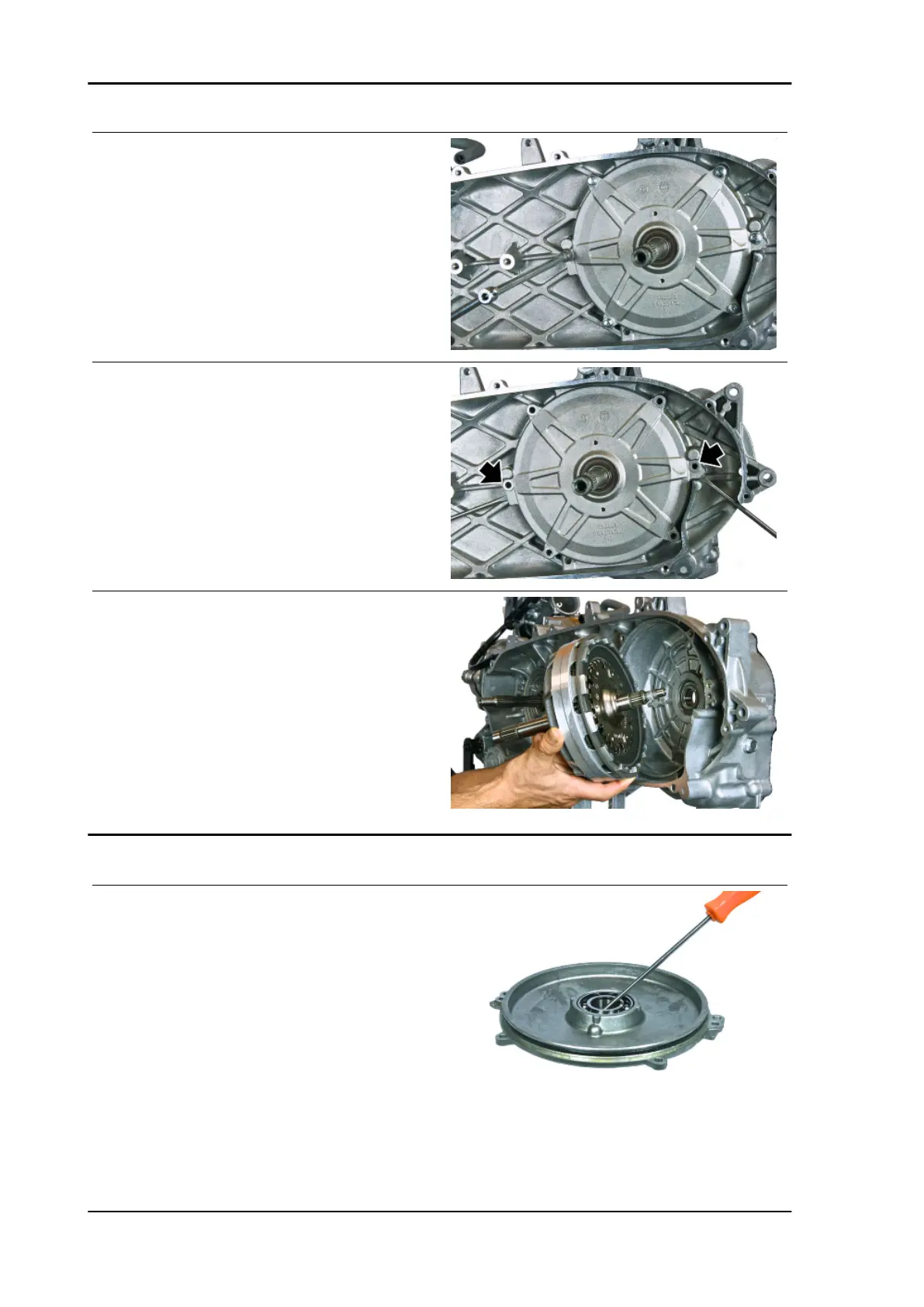 - Unscrew the six fixing screws from the clutch