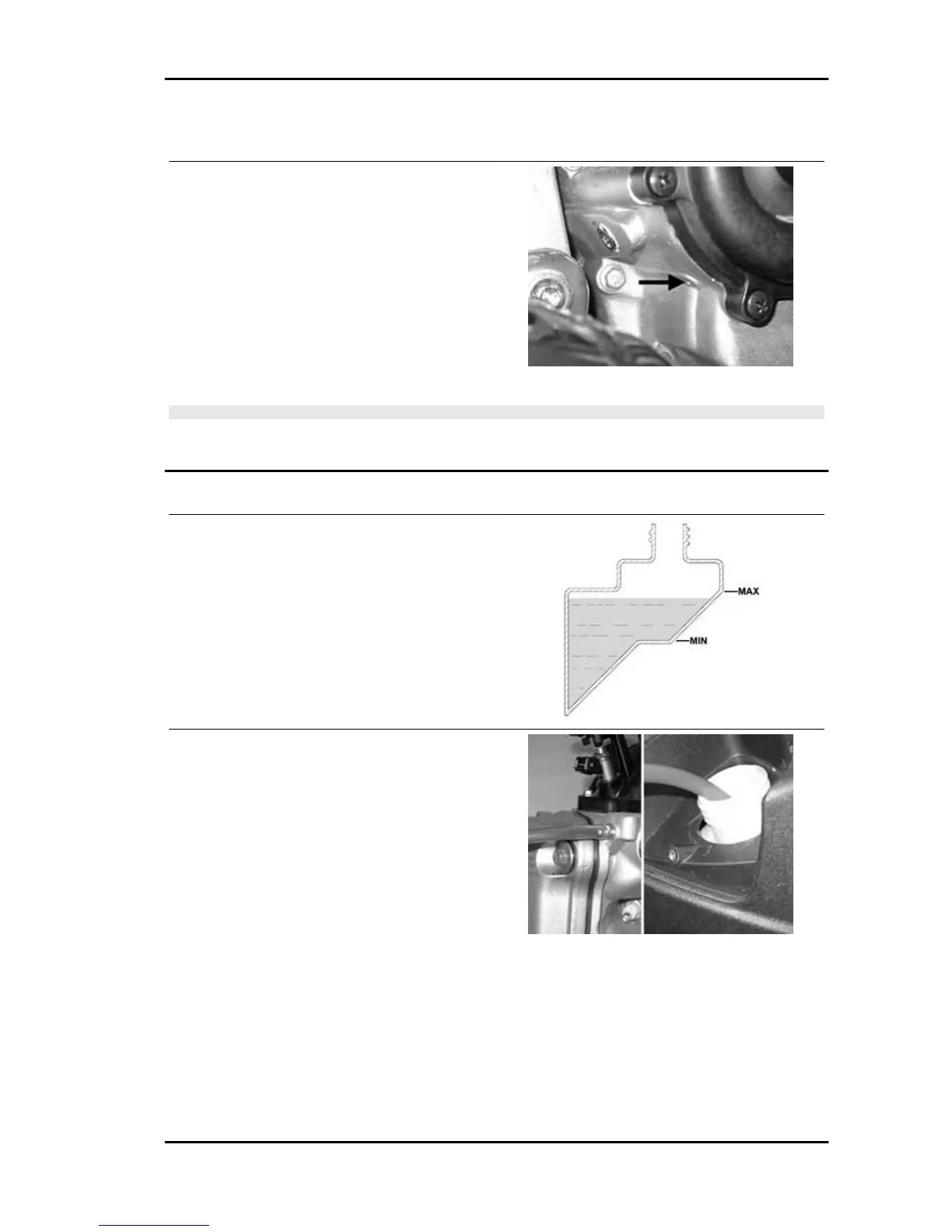 - If coolant or oil leaks are detected, inspect the pump (see Flywheel cover chapter).
