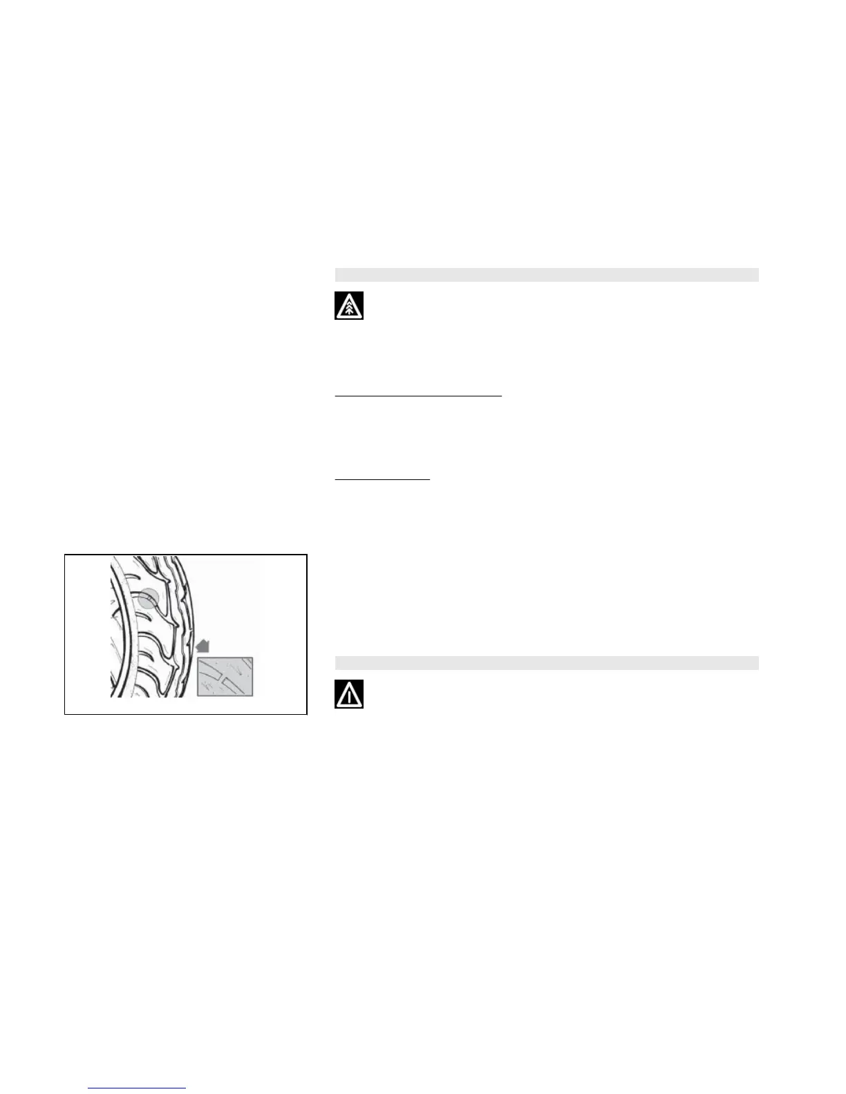 visible on the surface. Also check that the tyres do not show signs of splitting at the