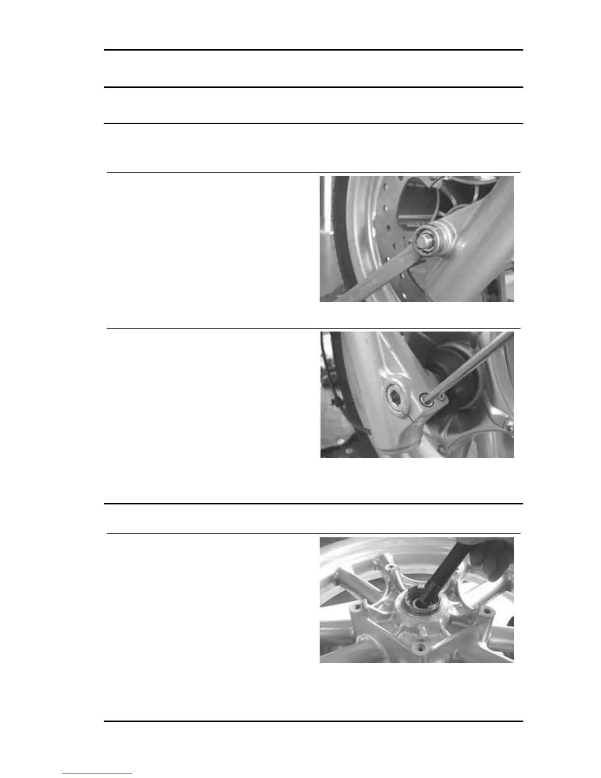 - Loosen the two wheel axle safety screws on the fork leg, on the brake calliper side.