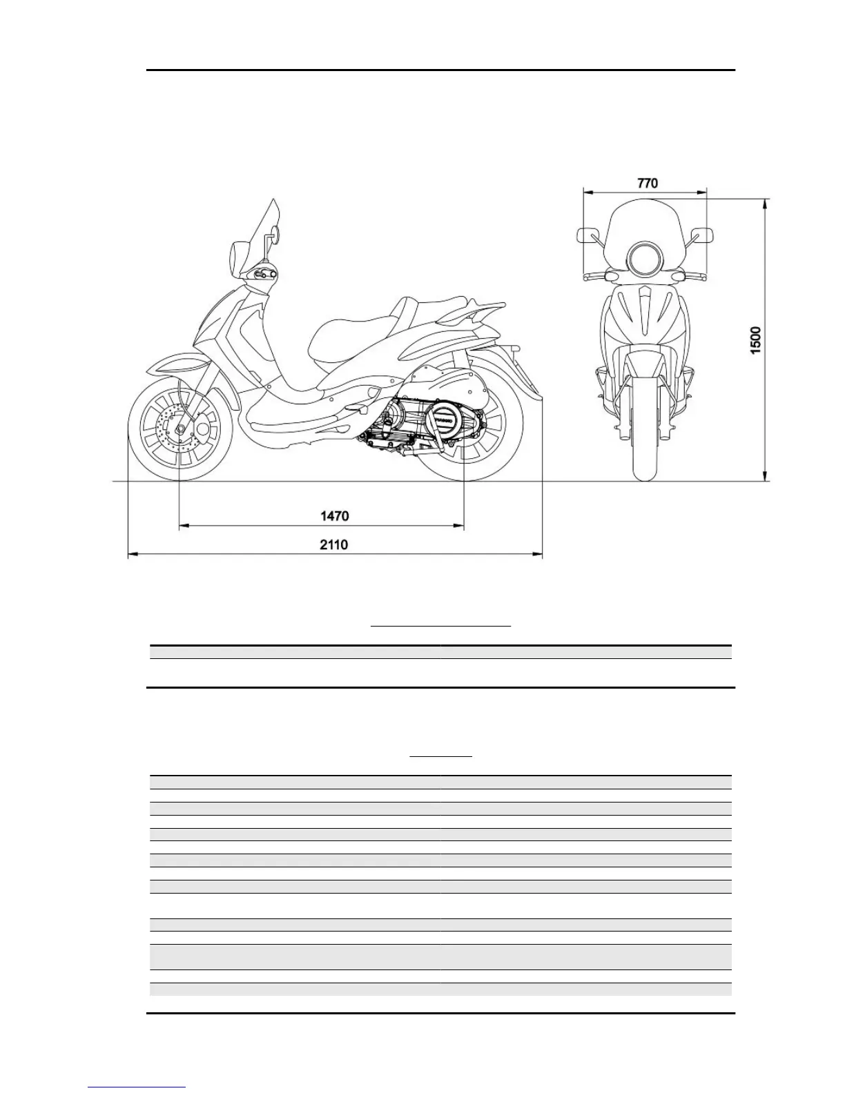 Kerb weight 163 kg ± 5 kg