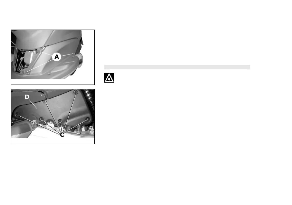 A. Remove the air cleaner cap «D»; take out the filter after unscrewing the 6 fixing