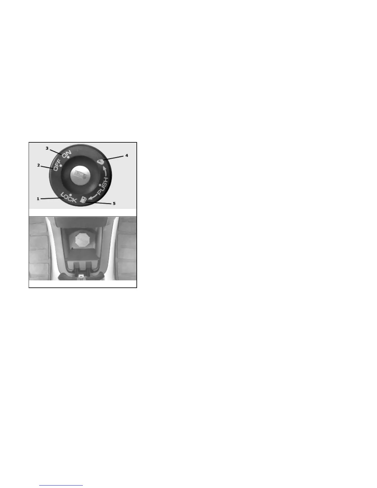 To open the fuel tank cover, set the key to «OFF» or « ON», then press and turn it