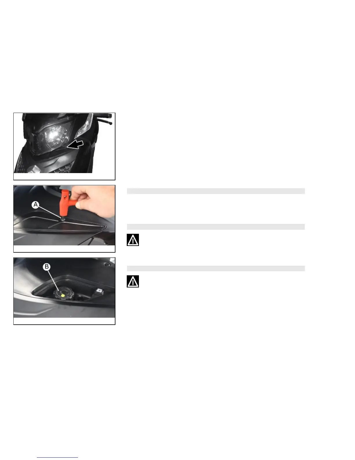 1. Rest the vehicle upright on the stand and remove the screw of the expansion tank