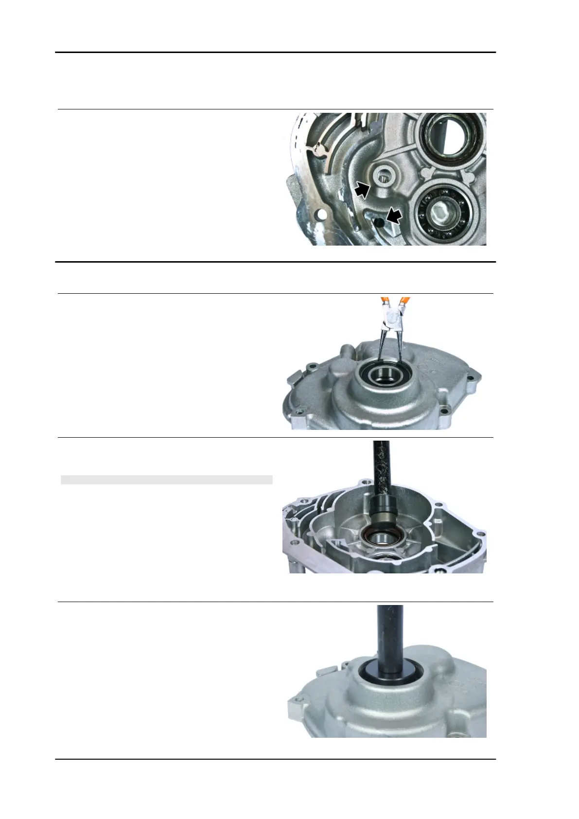 - Using the specific tools remove the bearing.