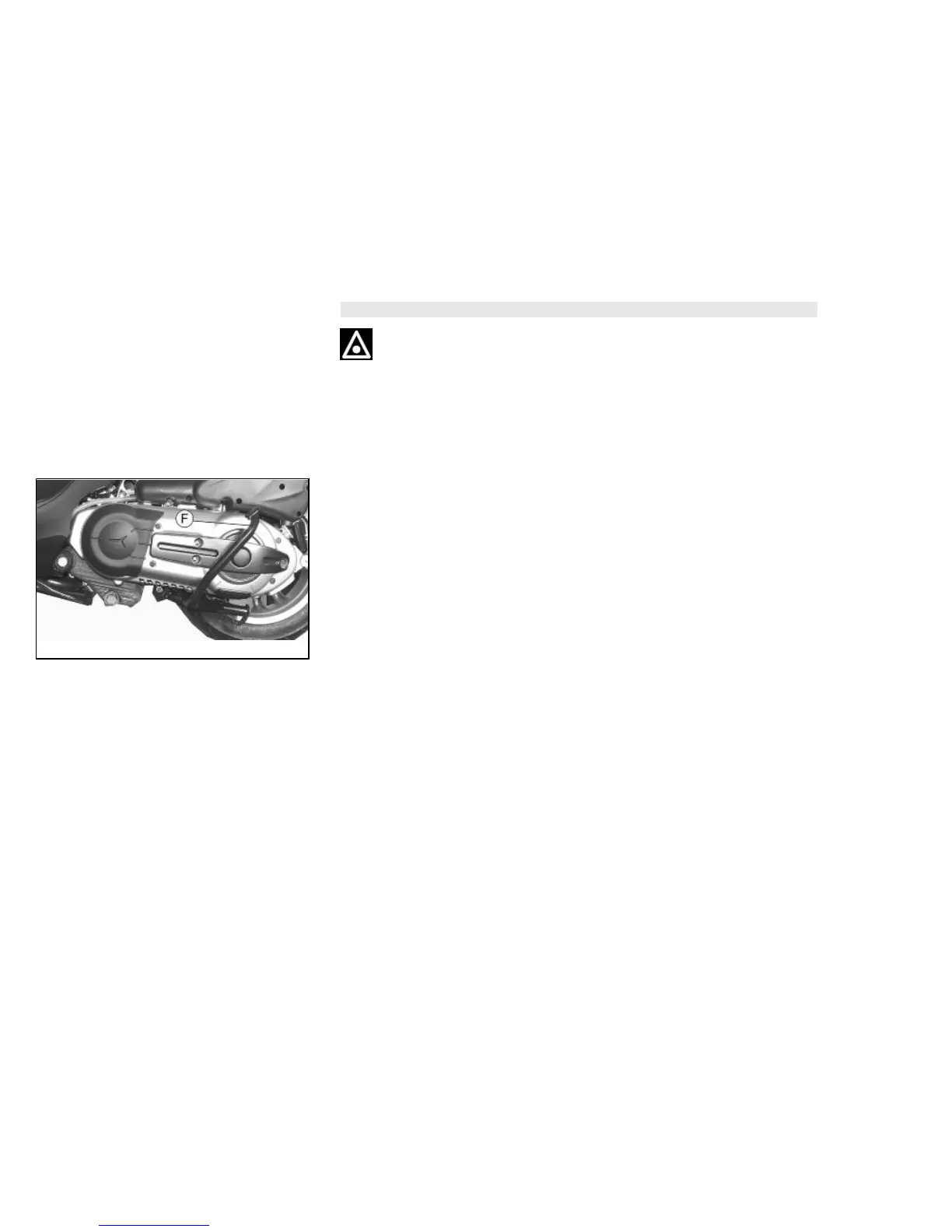Push with your foot on the centre stand's fork «F» while lifting the vehicle backward,