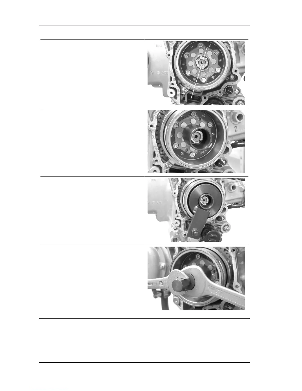 - Remove the flywheel nut with its washer