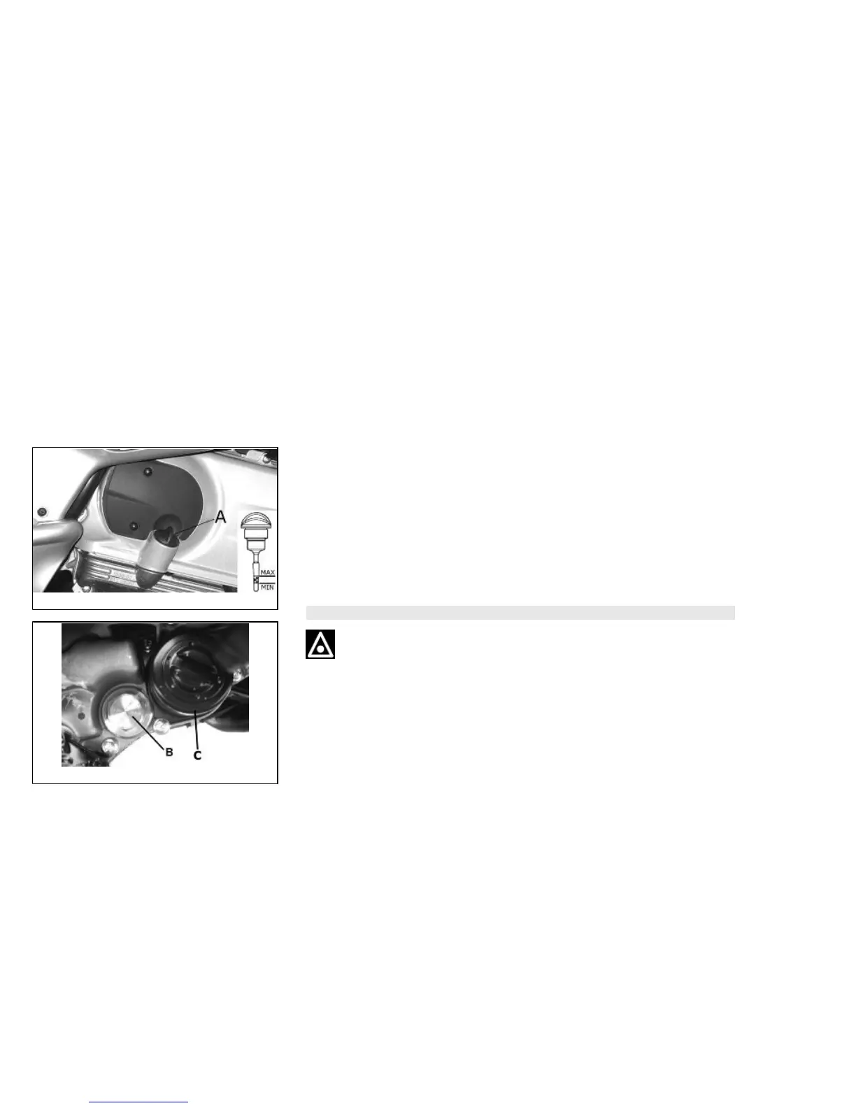 The oil and cartridge filter "C" must be changed after 1,000 km and every 10,000 km