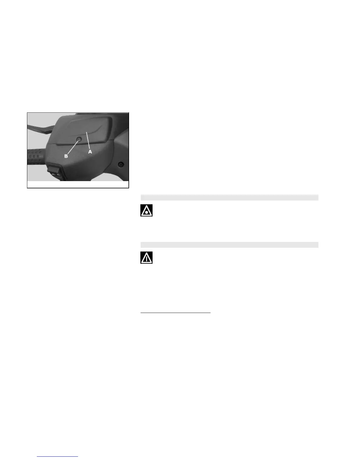 Loosen the screw "B" and lift the plastic cover "A" in order to access the brake fluid