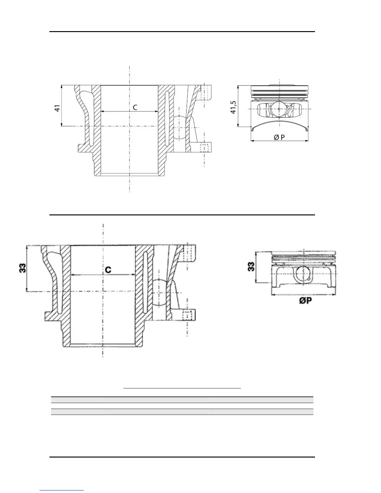 Cylinder / piston C 72.004 ÷ 72.011 71.967 ÷ 71.974 0.030 - 0.044