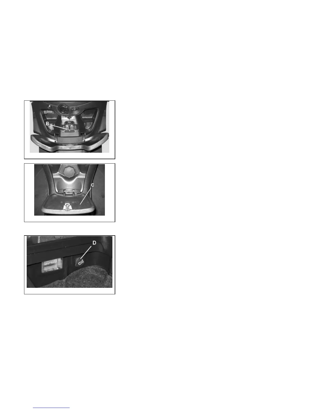 down. Press lever «B» and open the cover over the fuel tank cap «C».