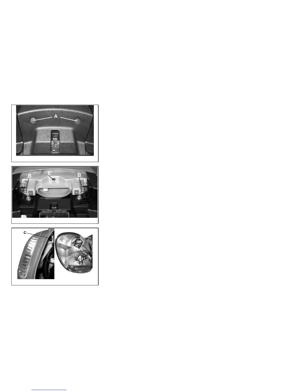 3. Remove the screw «C» of the light assembly being tested as shown in the figure.
