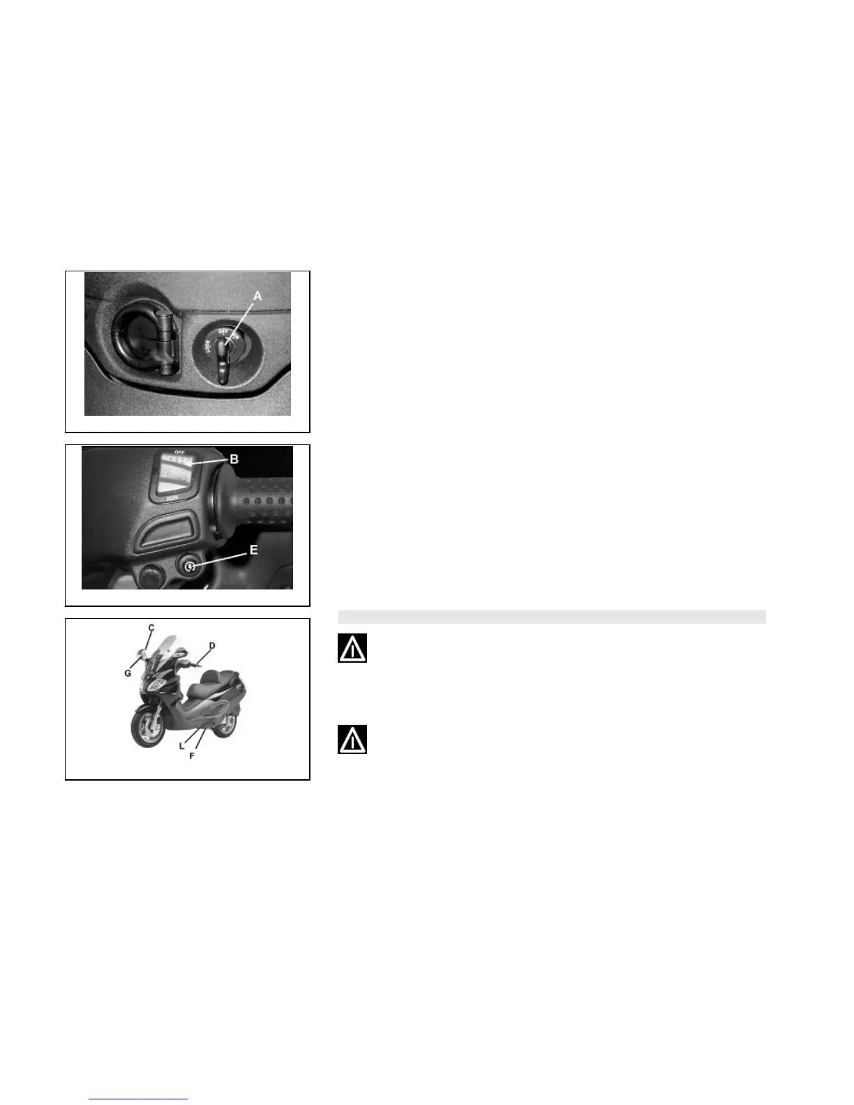 warning light on the digital instrument panel «D» signals this situation. The scooter is