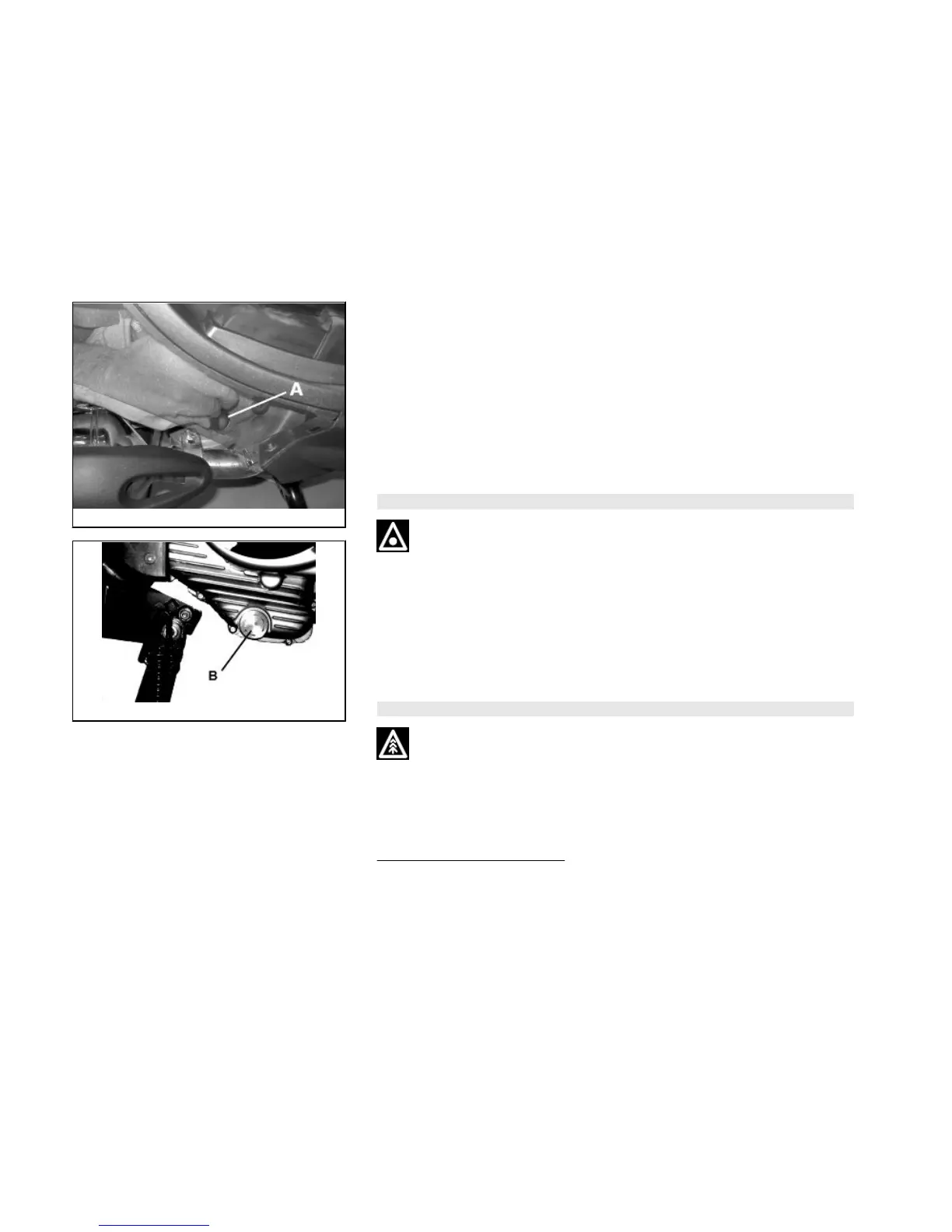 Service Center. The engine must be emptied by draining the oil from cap «B» on the