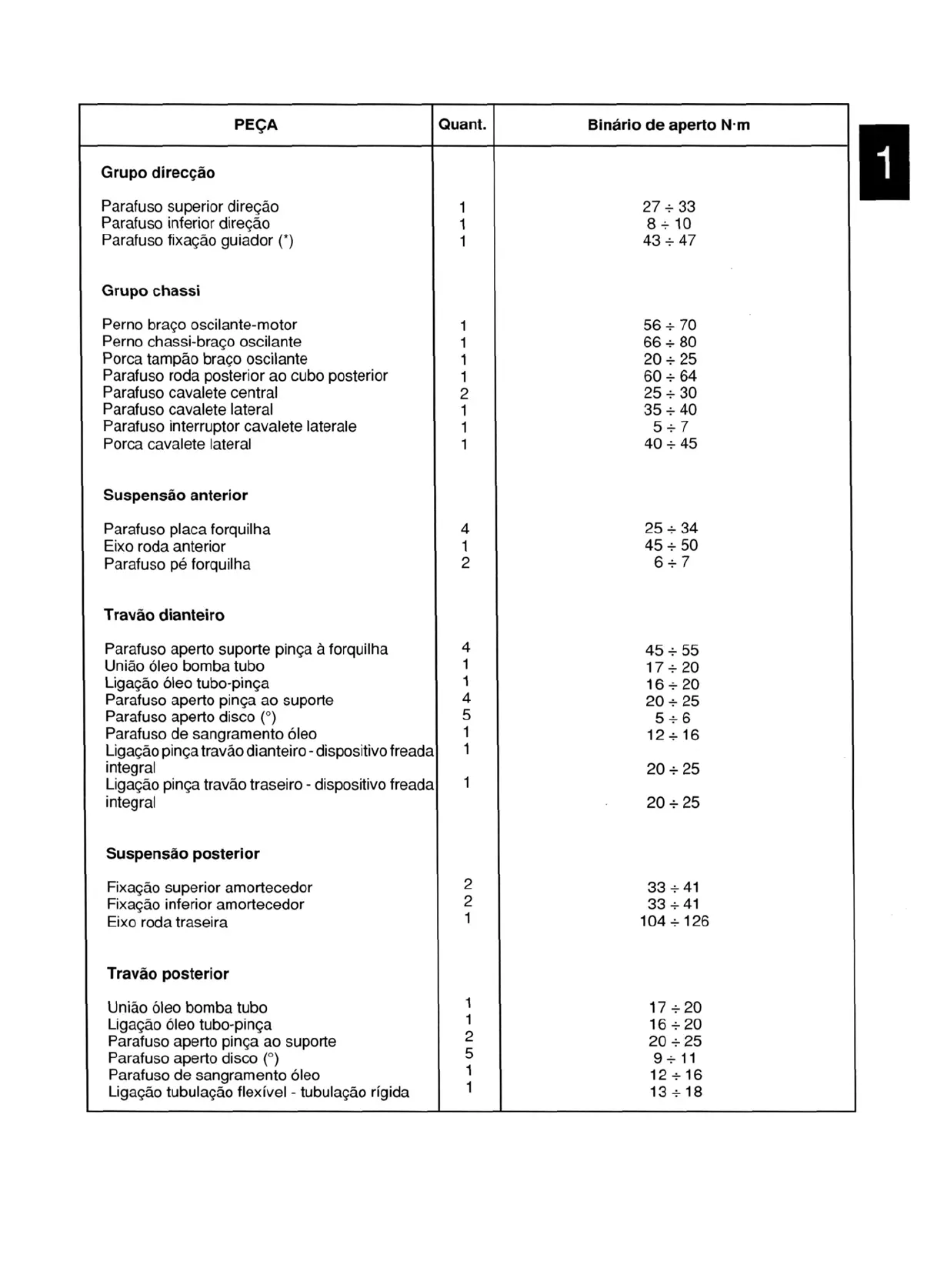 Binários de aperto