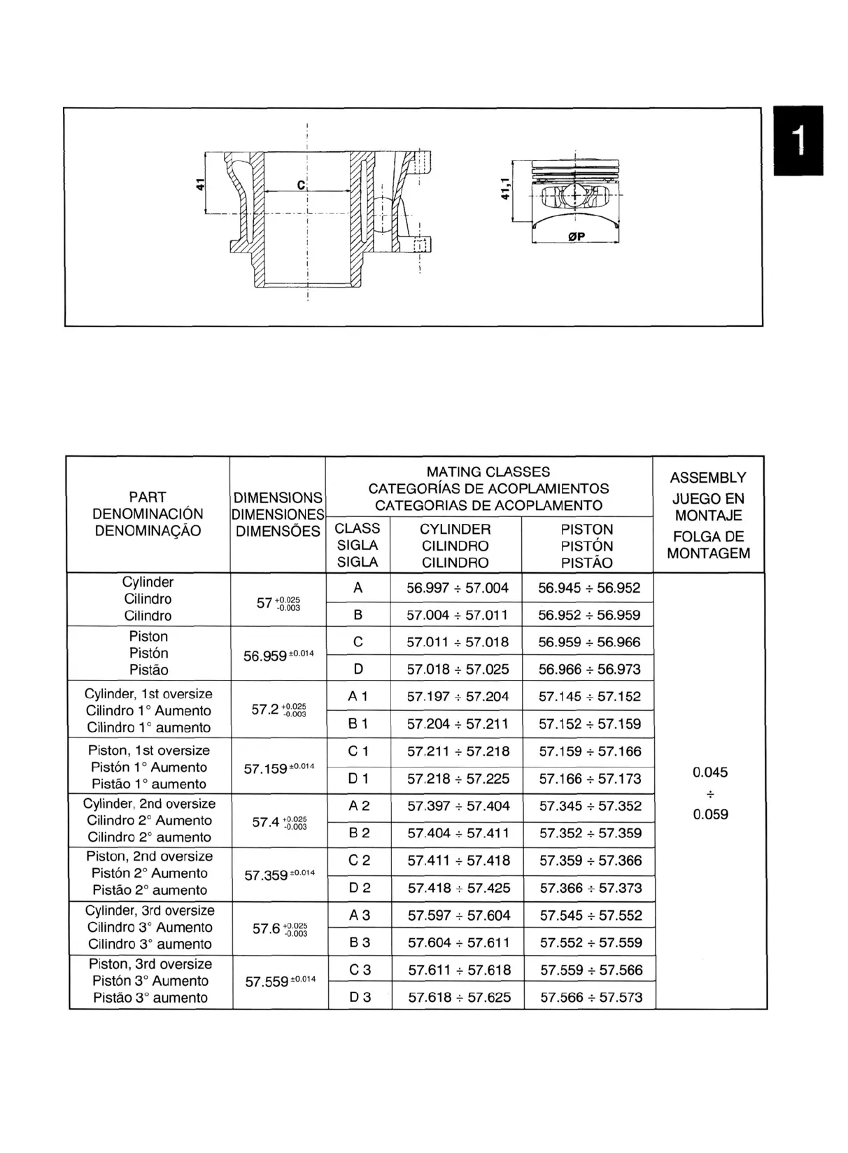 Acoplamiento entre pistón y cilindro 125 cc