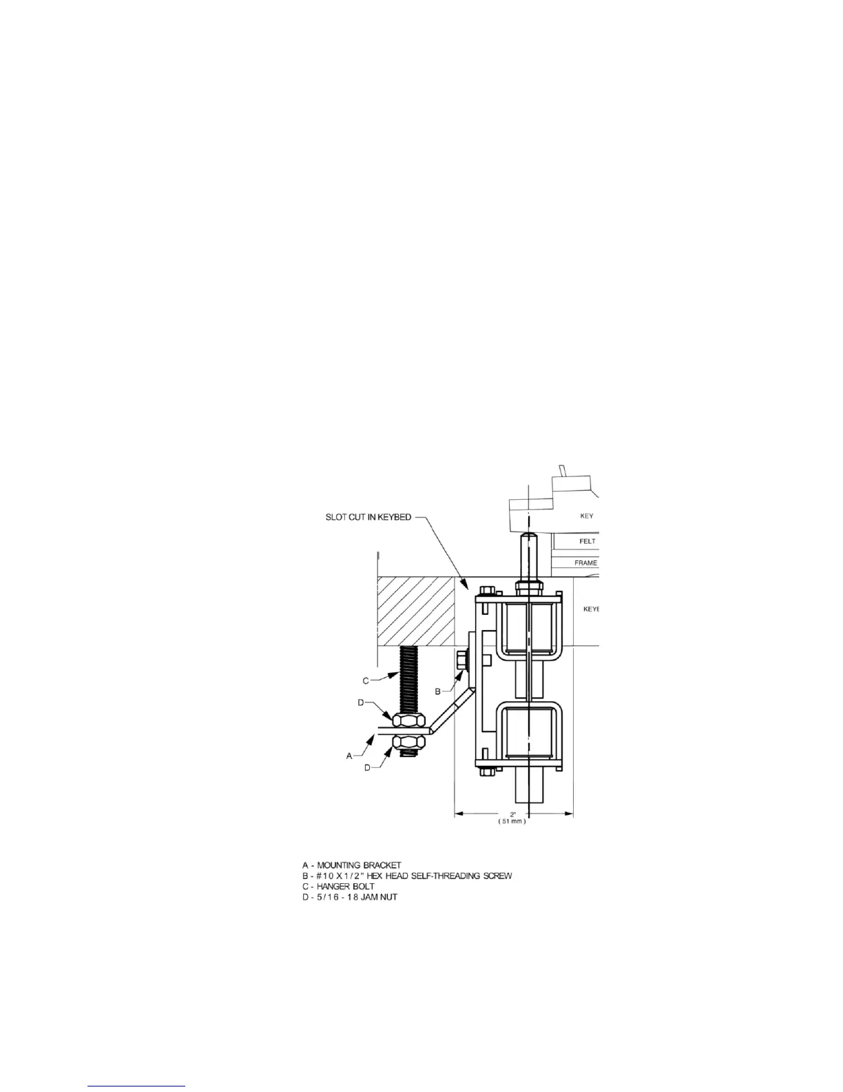 set of holes. The bottom holes are used for thick keybeds, 2” (51 mm) or