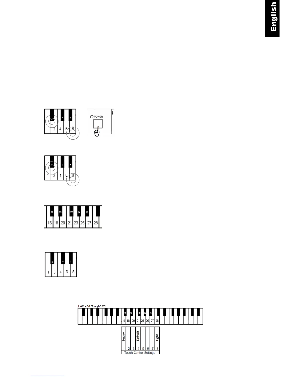 Piano key 16, 17 … 27 or 28 - Select the desired touch control