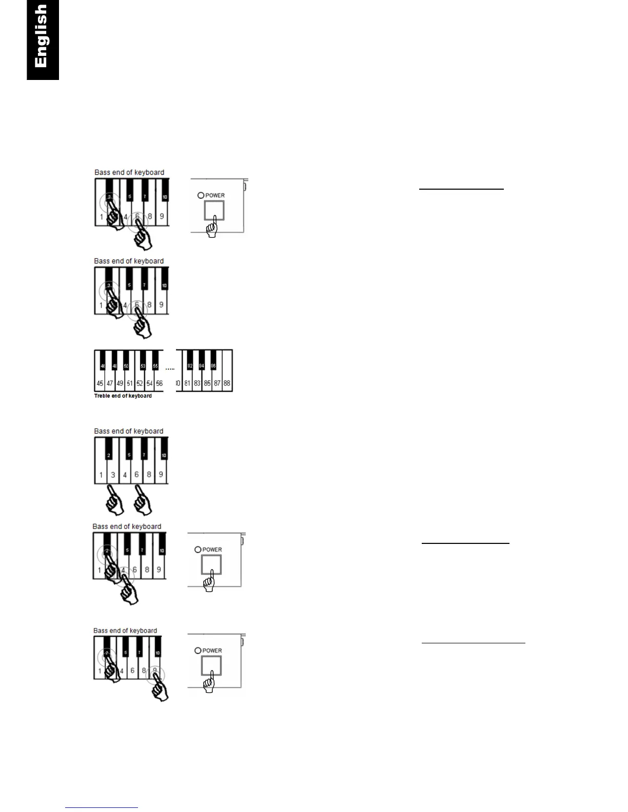 Piano keys 2 and 9 + Power ON - To reset all values to “0”,