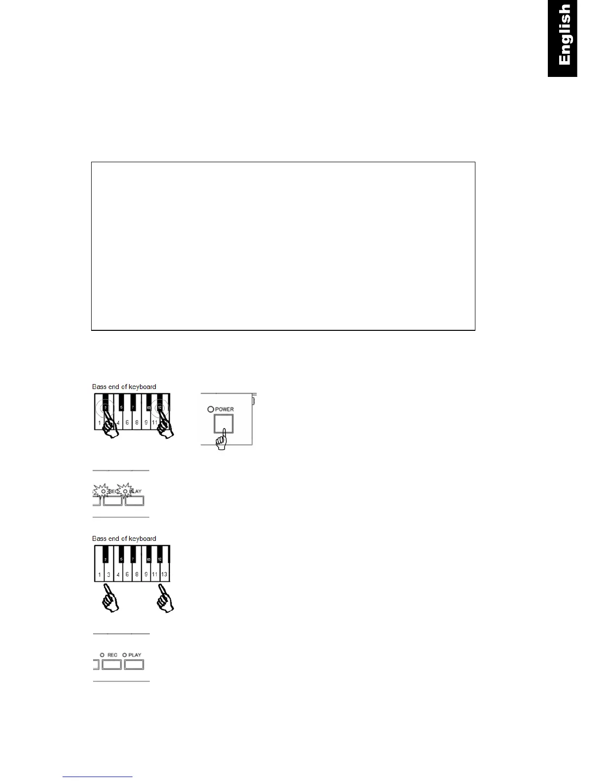 Piano keys 2 and 12 + Power ON -.Press and hold keys 2