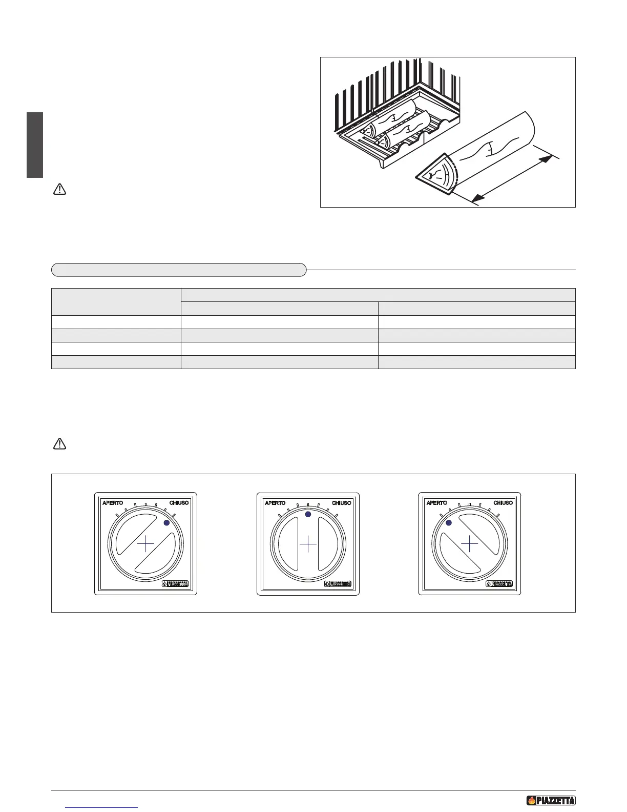 Before putting in any logs, always set the damper to the open “APERTO” position. After having put in the wood, set the damper