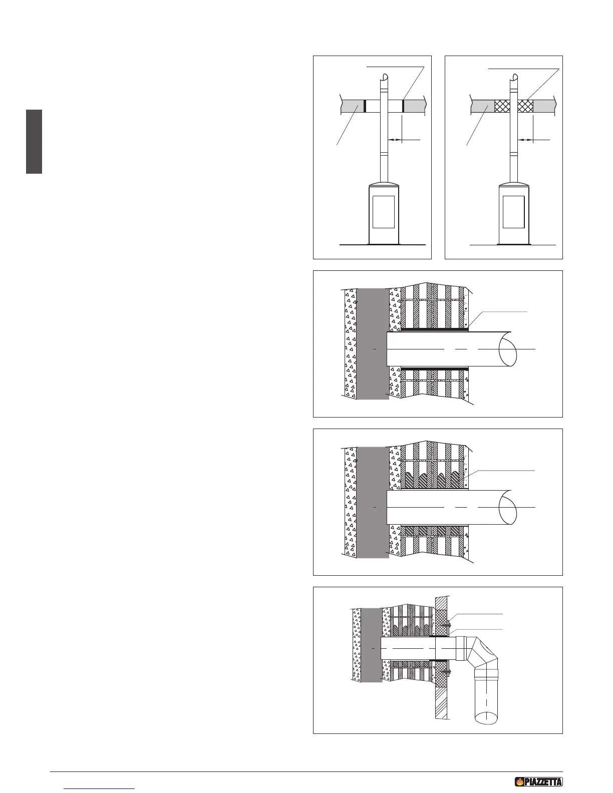 insulation of at least 20 cm around the flue pipe assembly (for ex-