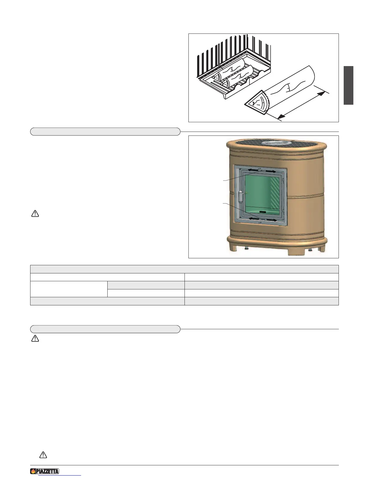 - The logs must not touch the aluker or the glass window nor must