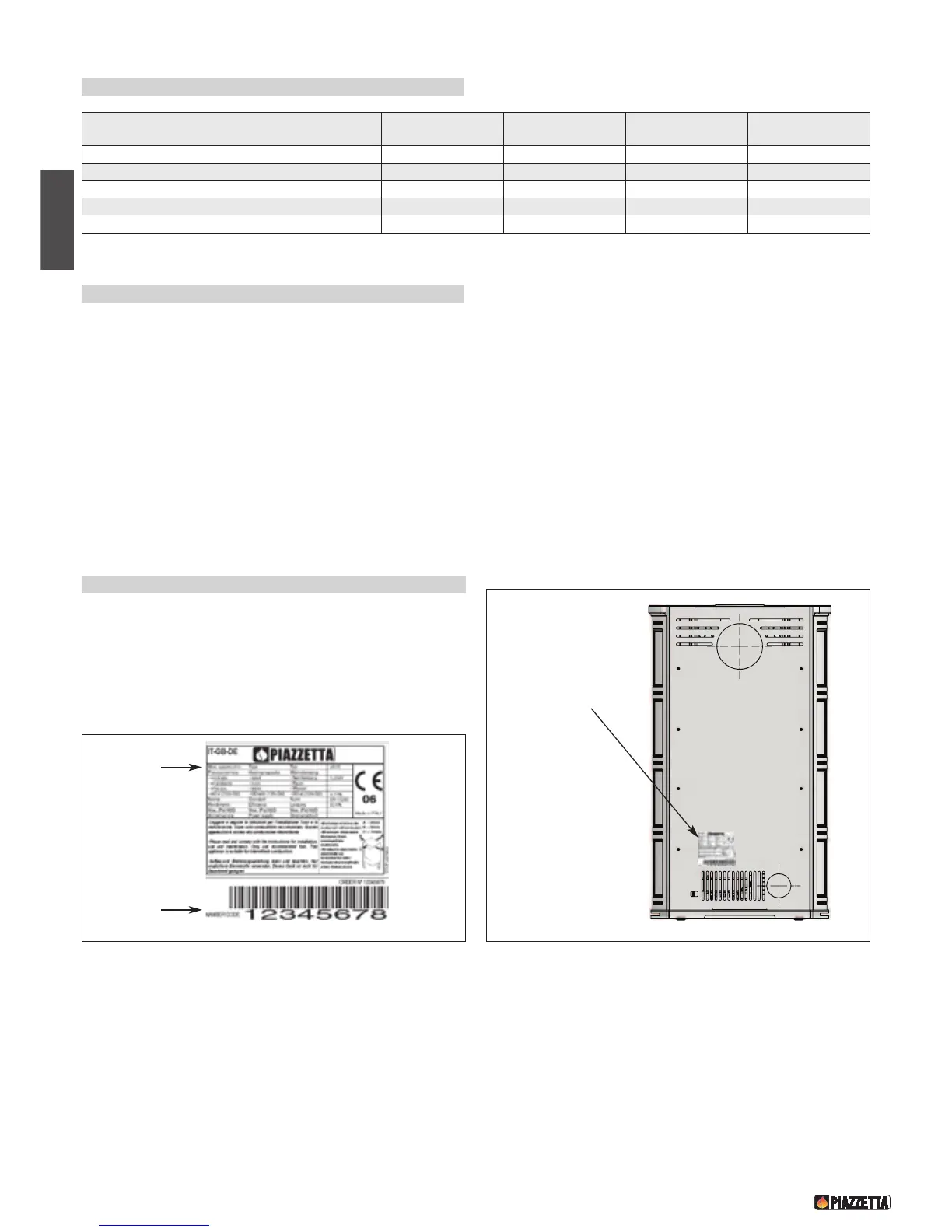 Smoke outlet . . . . . . . . . . . . . . . . . . . . . . . . . . . . . . . . . . . . . . . . . . . . . top and rear (top flue gas outlet only in stove e911)