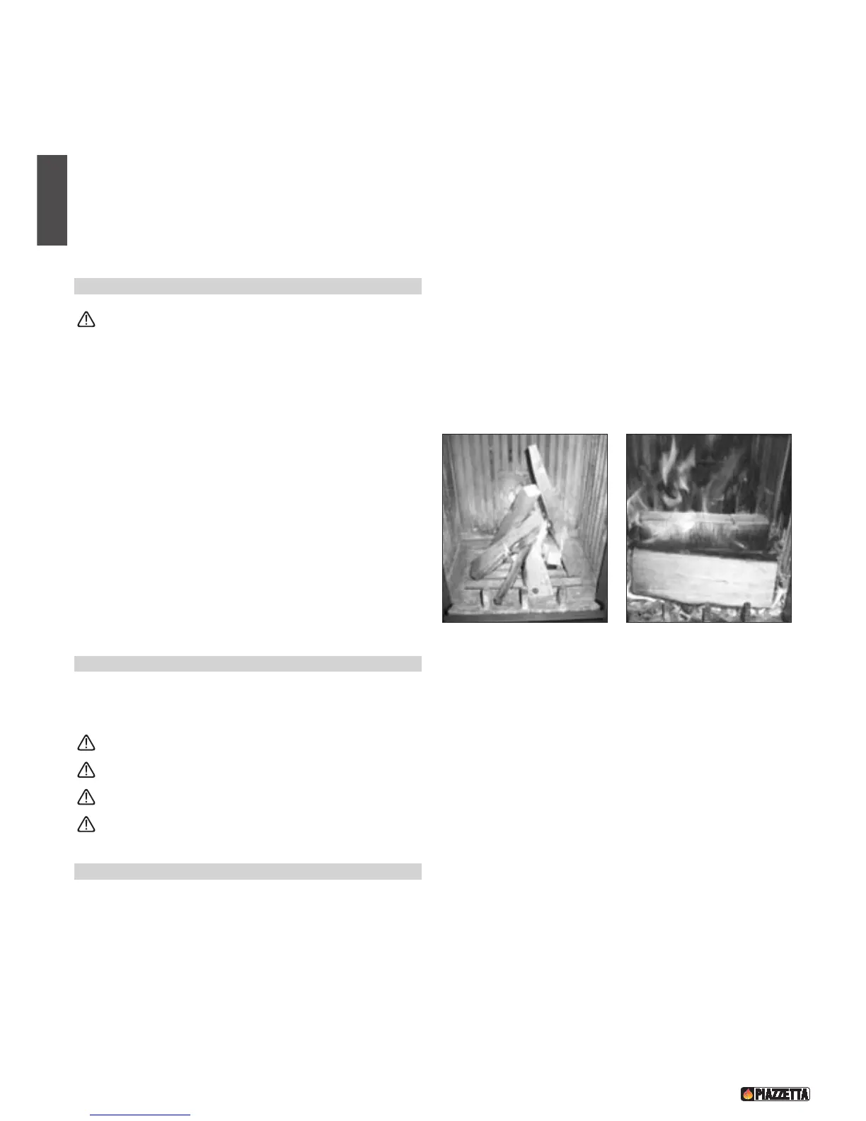 Before lighting, remove the supplied accessories (see accessories paragraph) and flammable elements from the grate or from