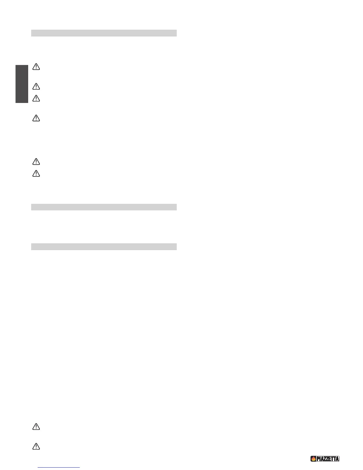 The stove or fireplace must not be used simultaneously with collective type ventilation ducts with or without extractor fan, other