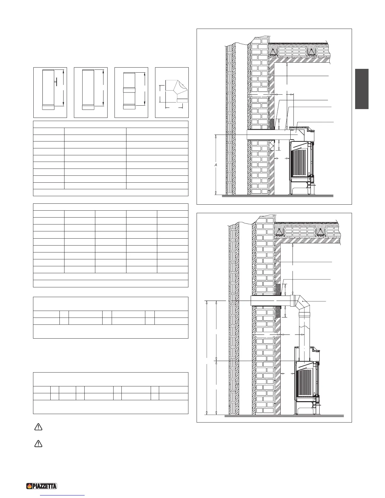 TABLE REAR FLUE GAS OUTLET (Measurements in cm)