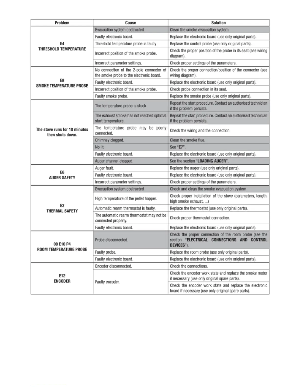 Piazzetta LINE - E4 Threshold Temperature Error; E8 Smoke Temperature Probe Fault; E6 Auger Safety Error; E3 Thermal Safety Error